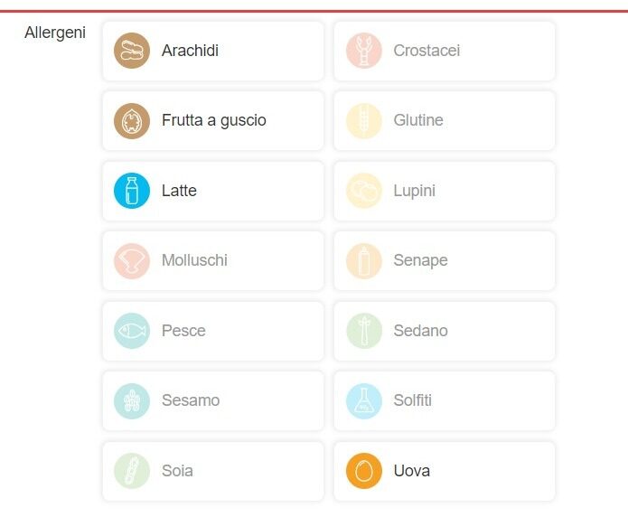 – Seleziona i simboli degli allergeni.
