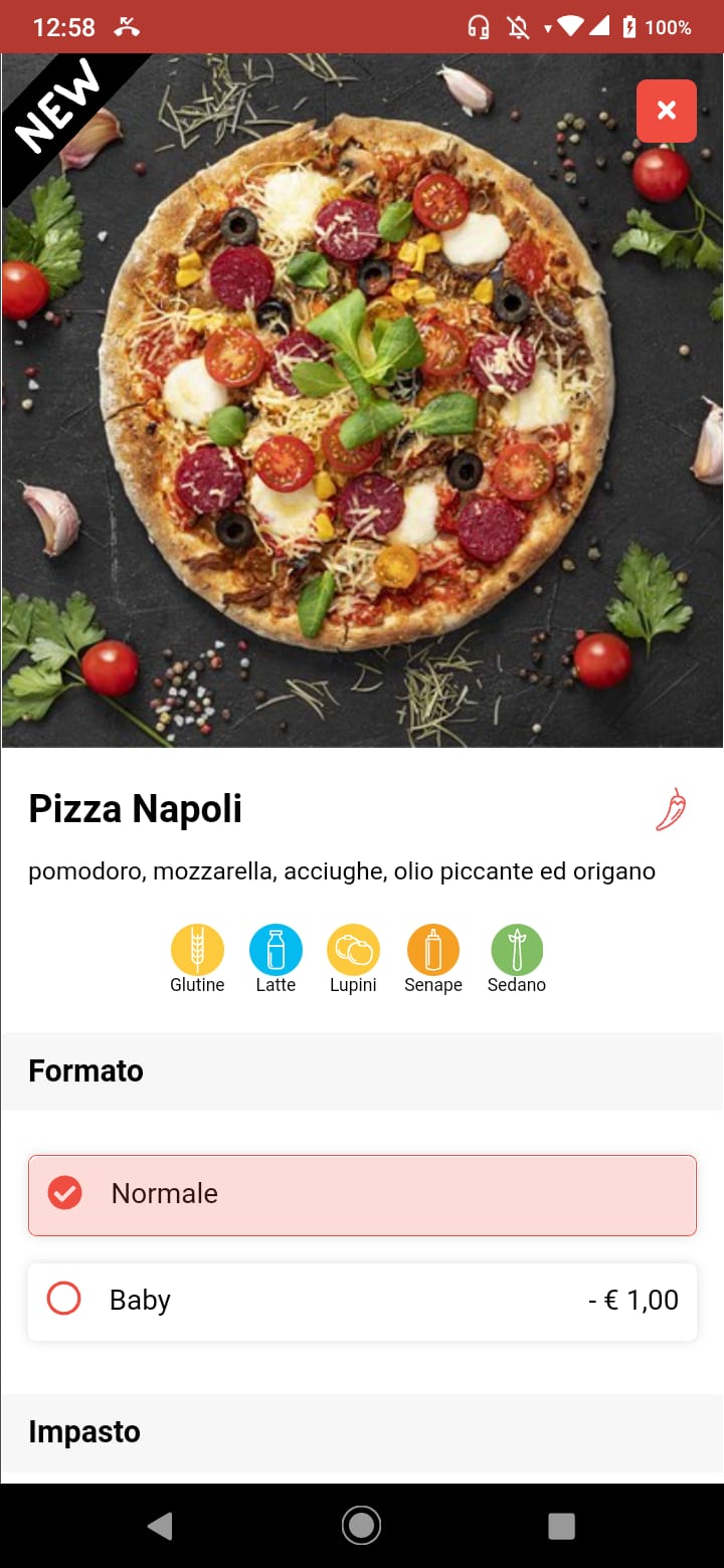 Per aggiungere gli allergeni ai tuoi prodotti ti basta cliccare sull’icona corrispondente.